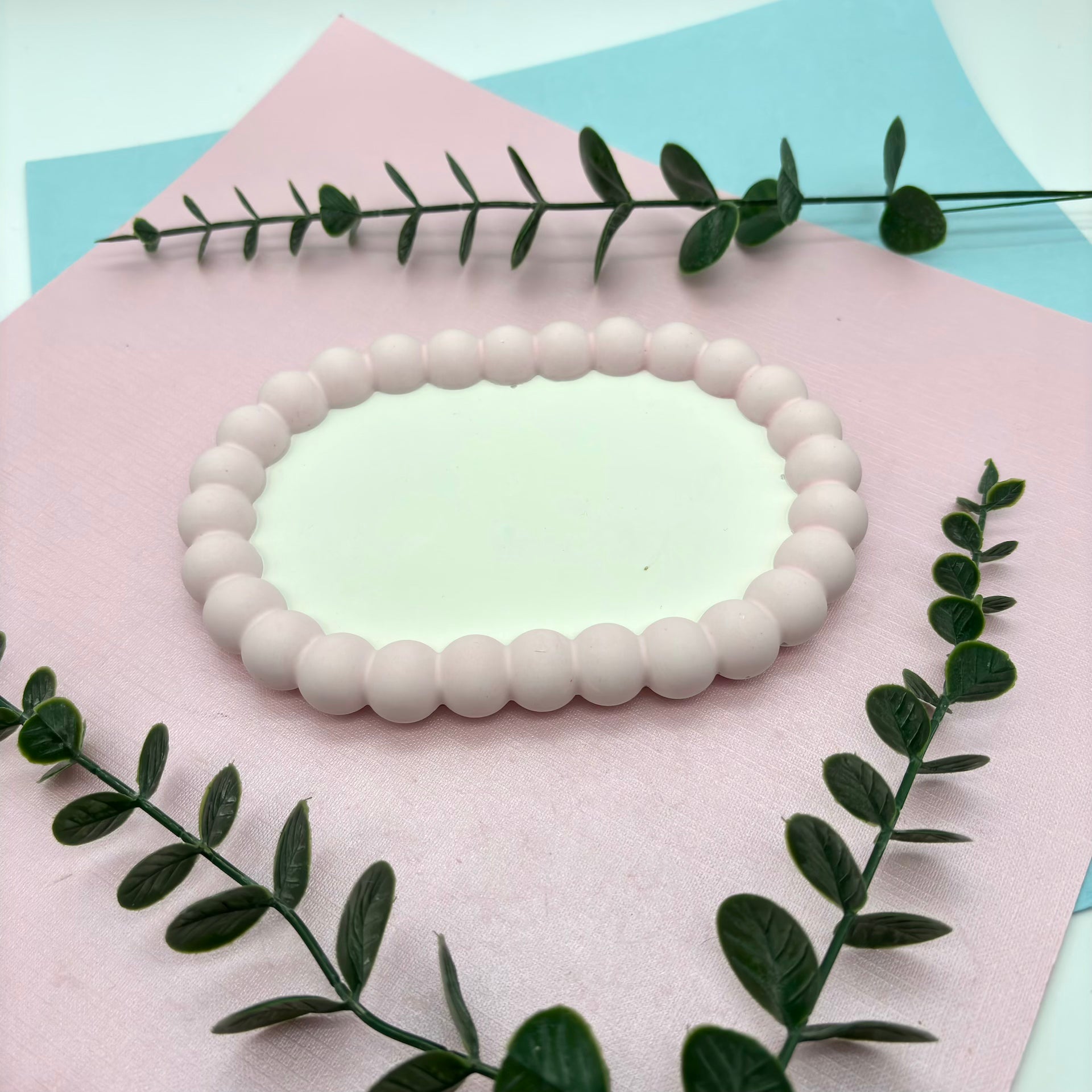 Preciosa bandeja ovalada con burbujas a su alrededor dándole un toque original.